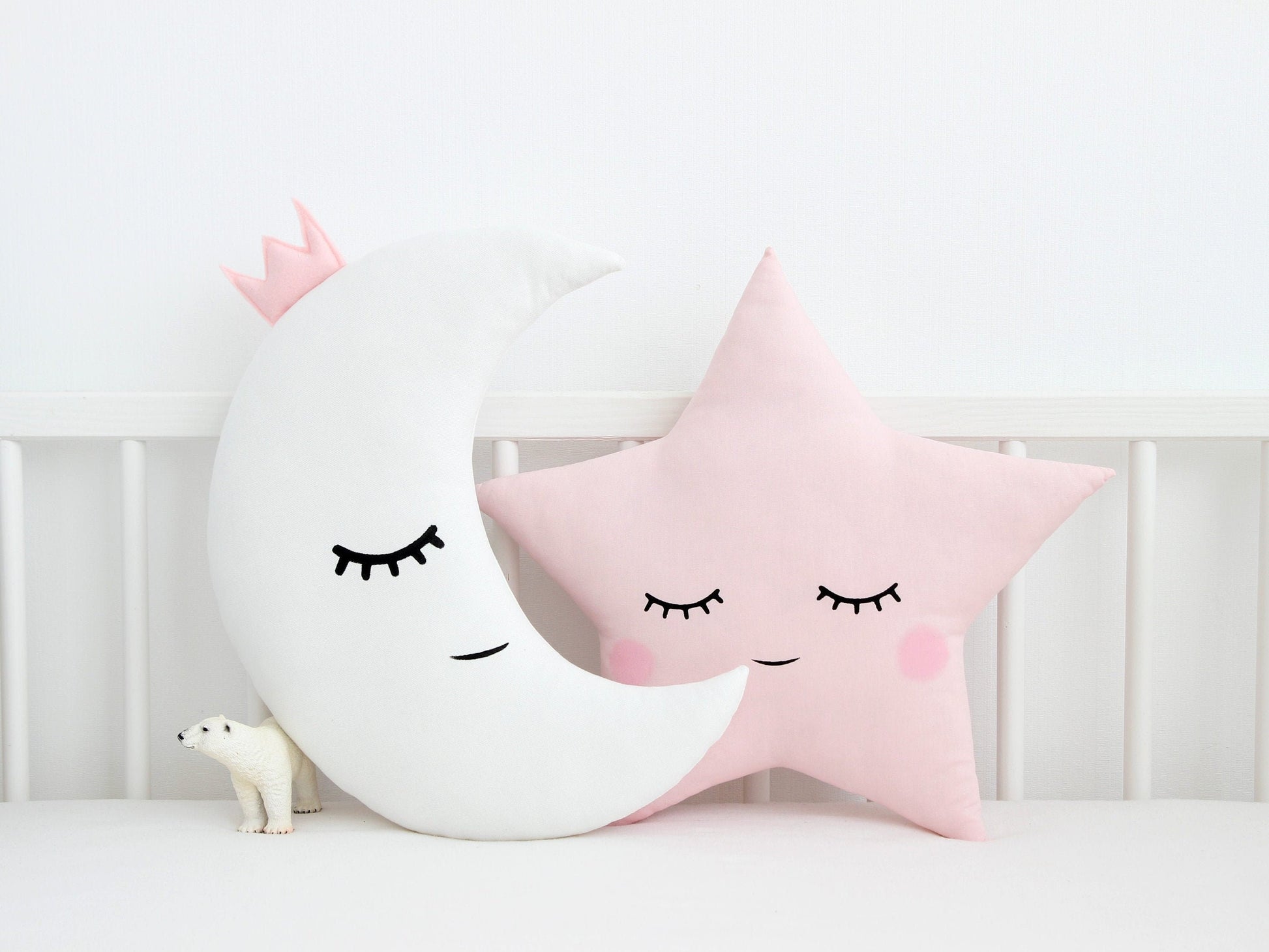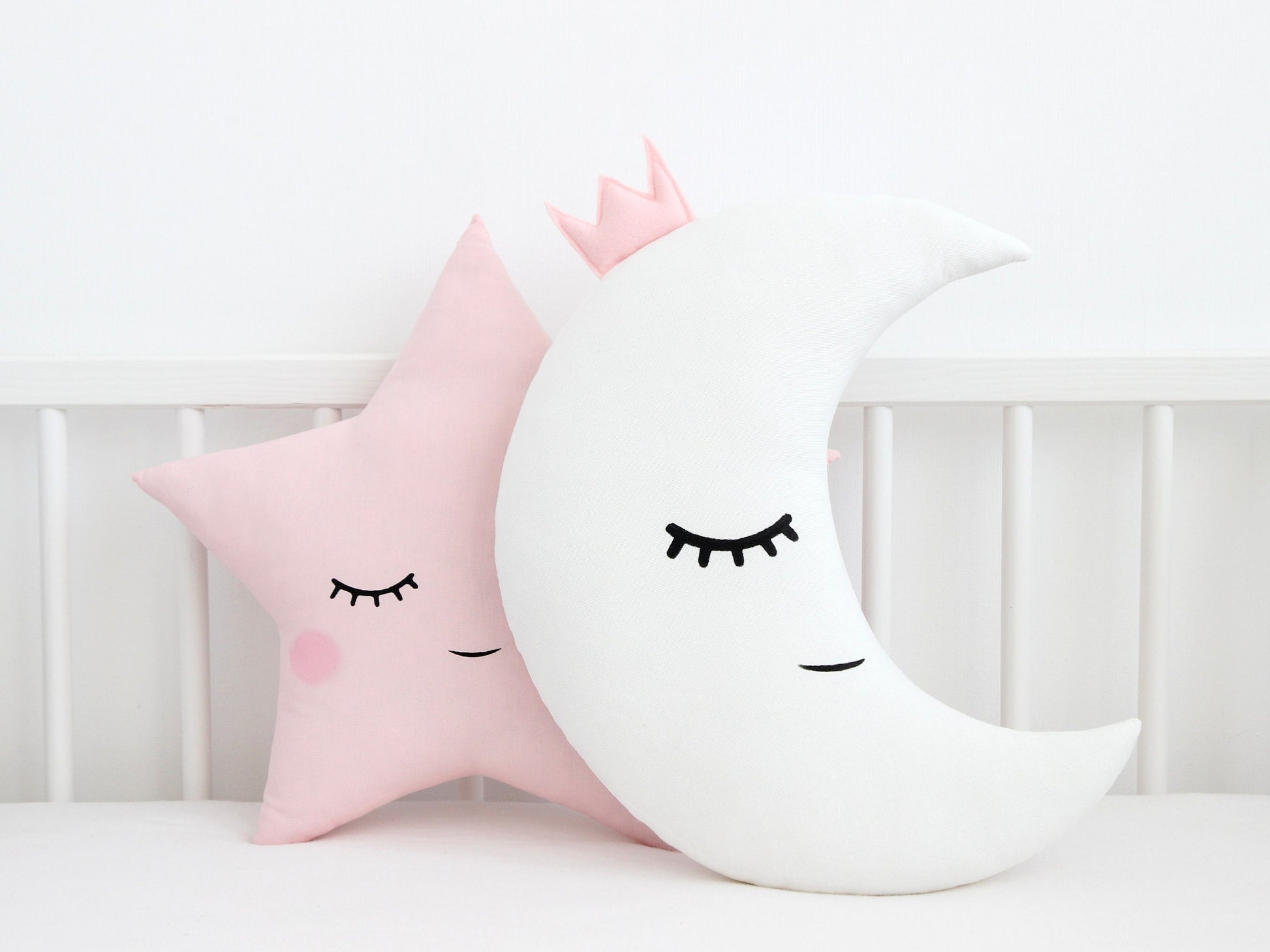 Set of 2 Pillows - White Crescent Moon Pillow and Pale Pink Star Pillow