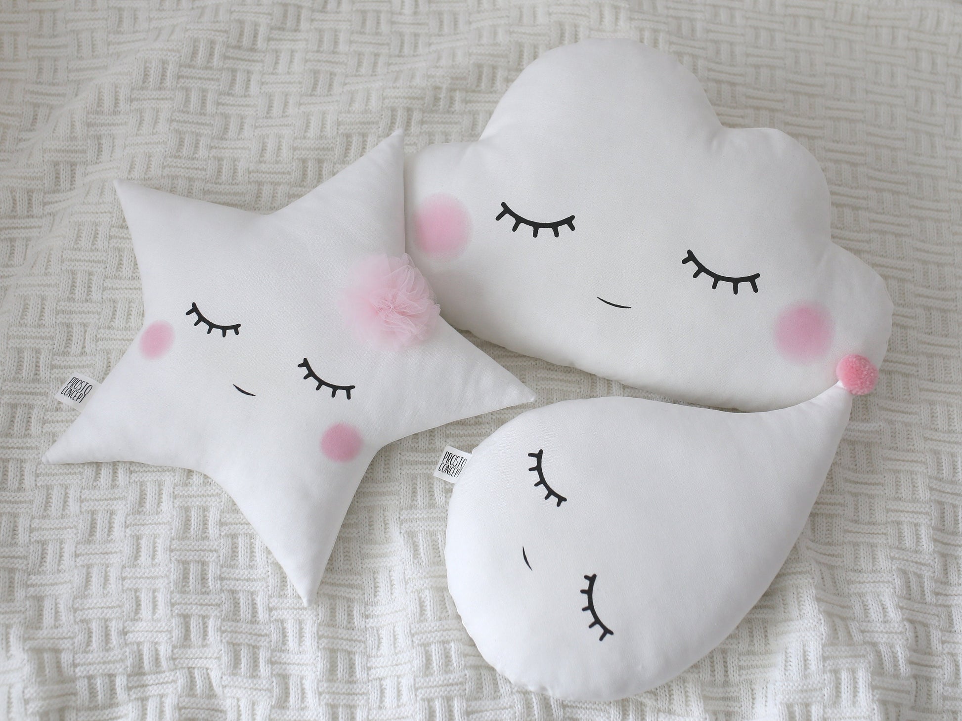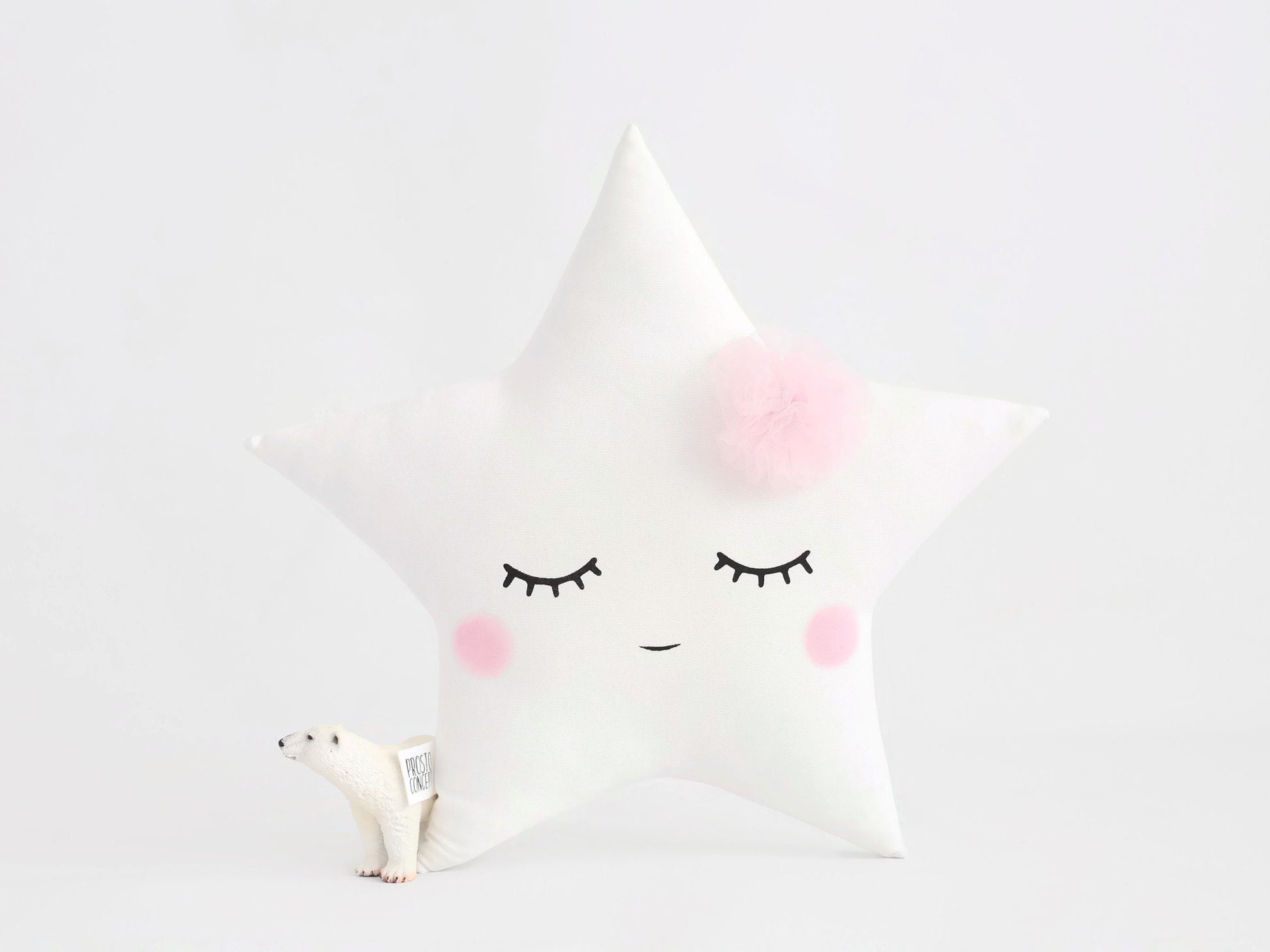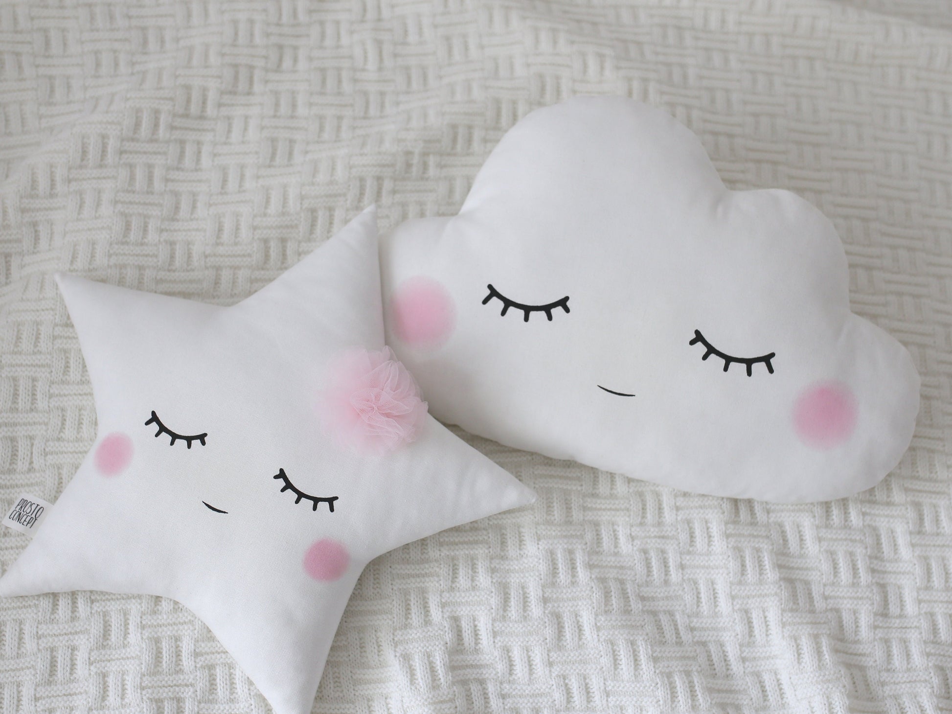 Set of 2 White Pillows - Cloud Pillow and Star Pillow with Tulle Flower