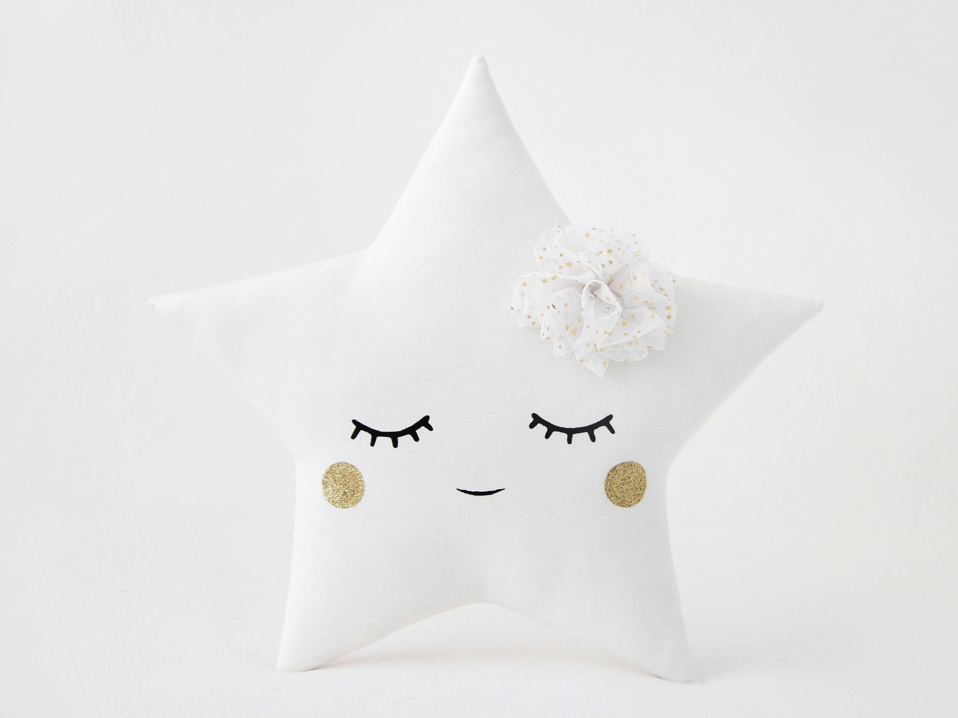 Sleepy Star Pillow (2 colors) with Tulle Flower and Golden Cheeks