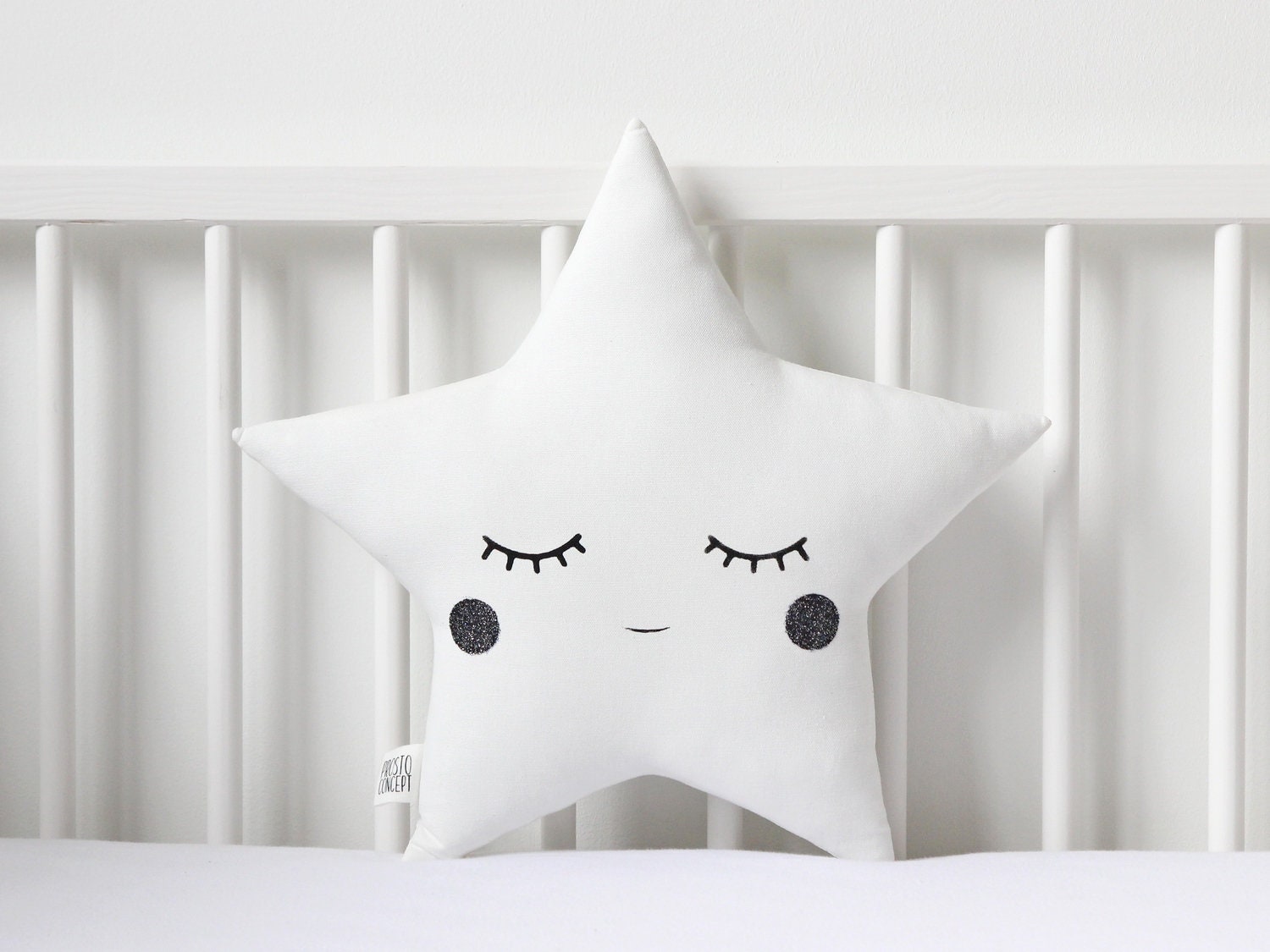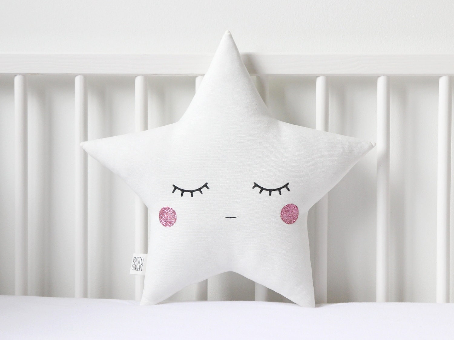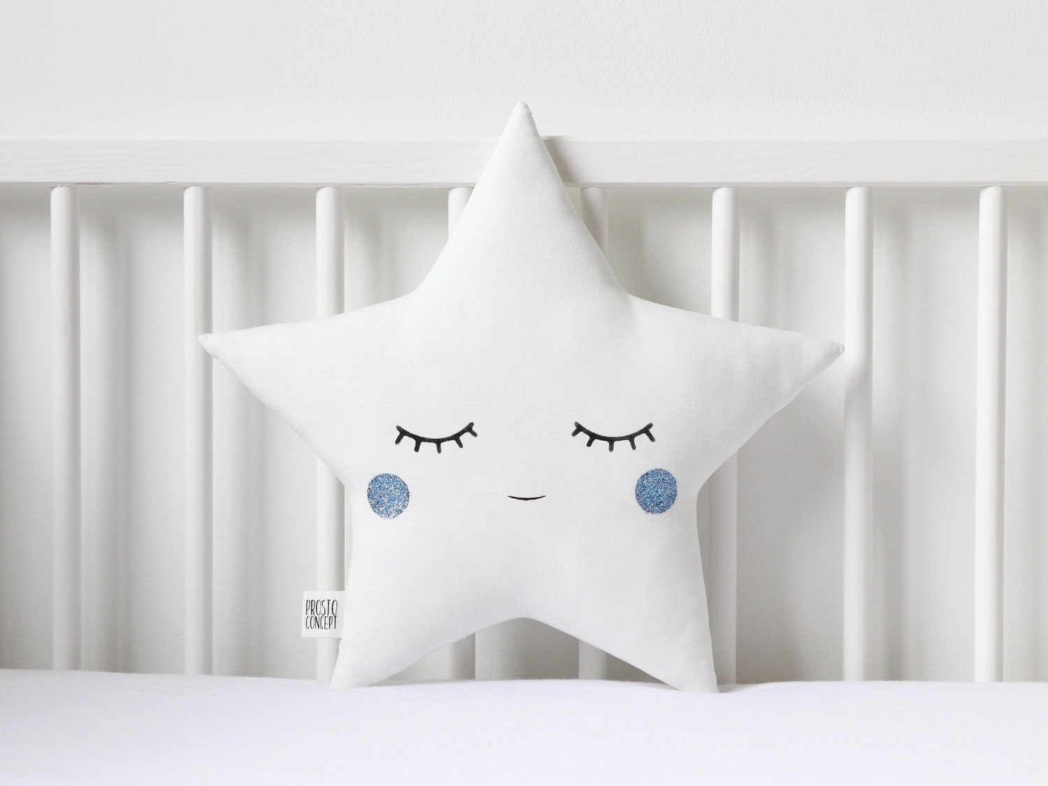 White Star Pillow with Glitter Touch