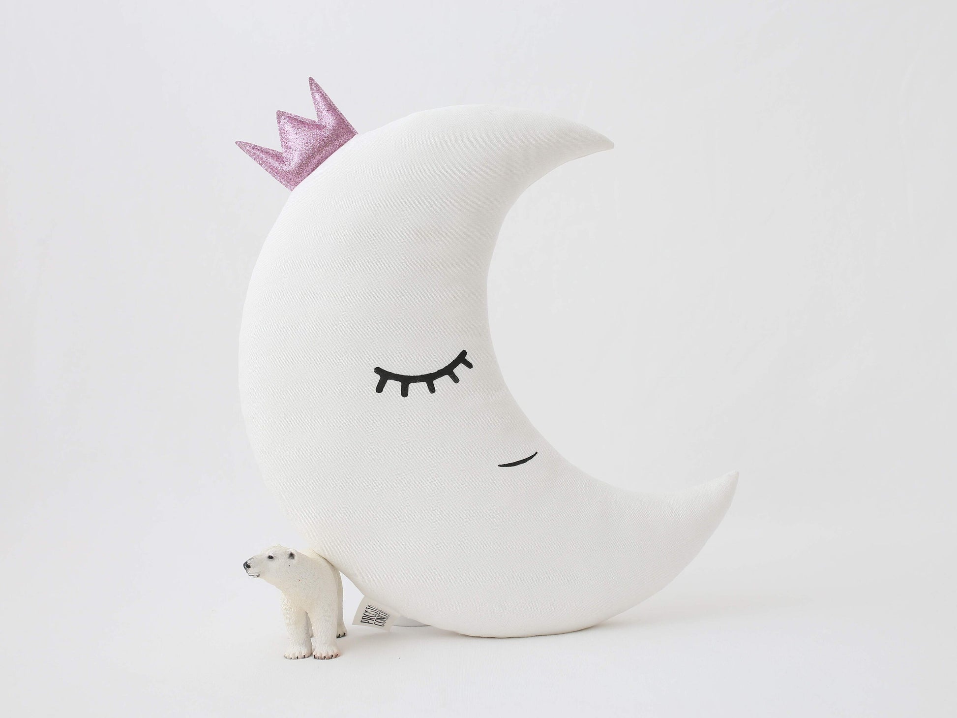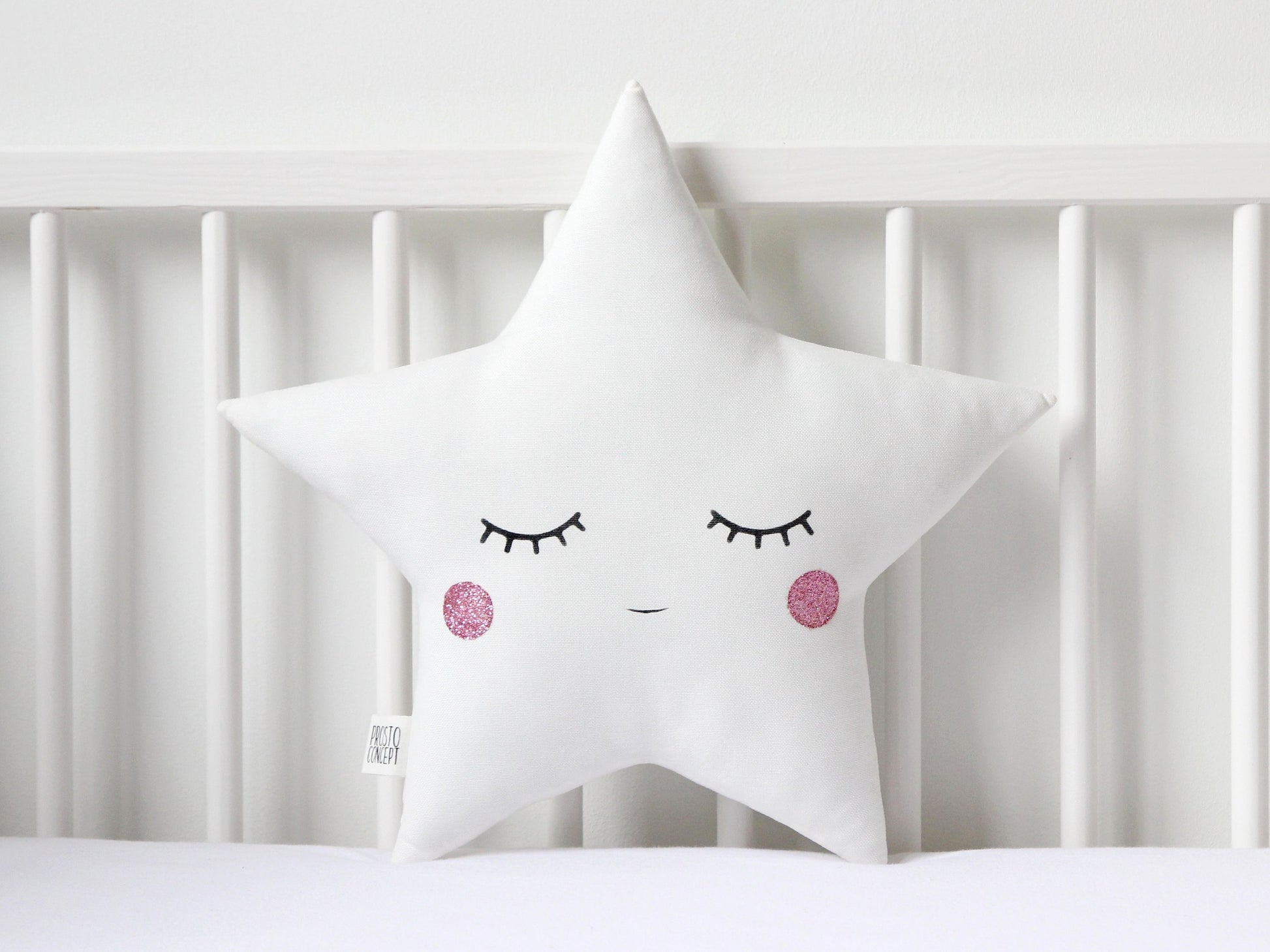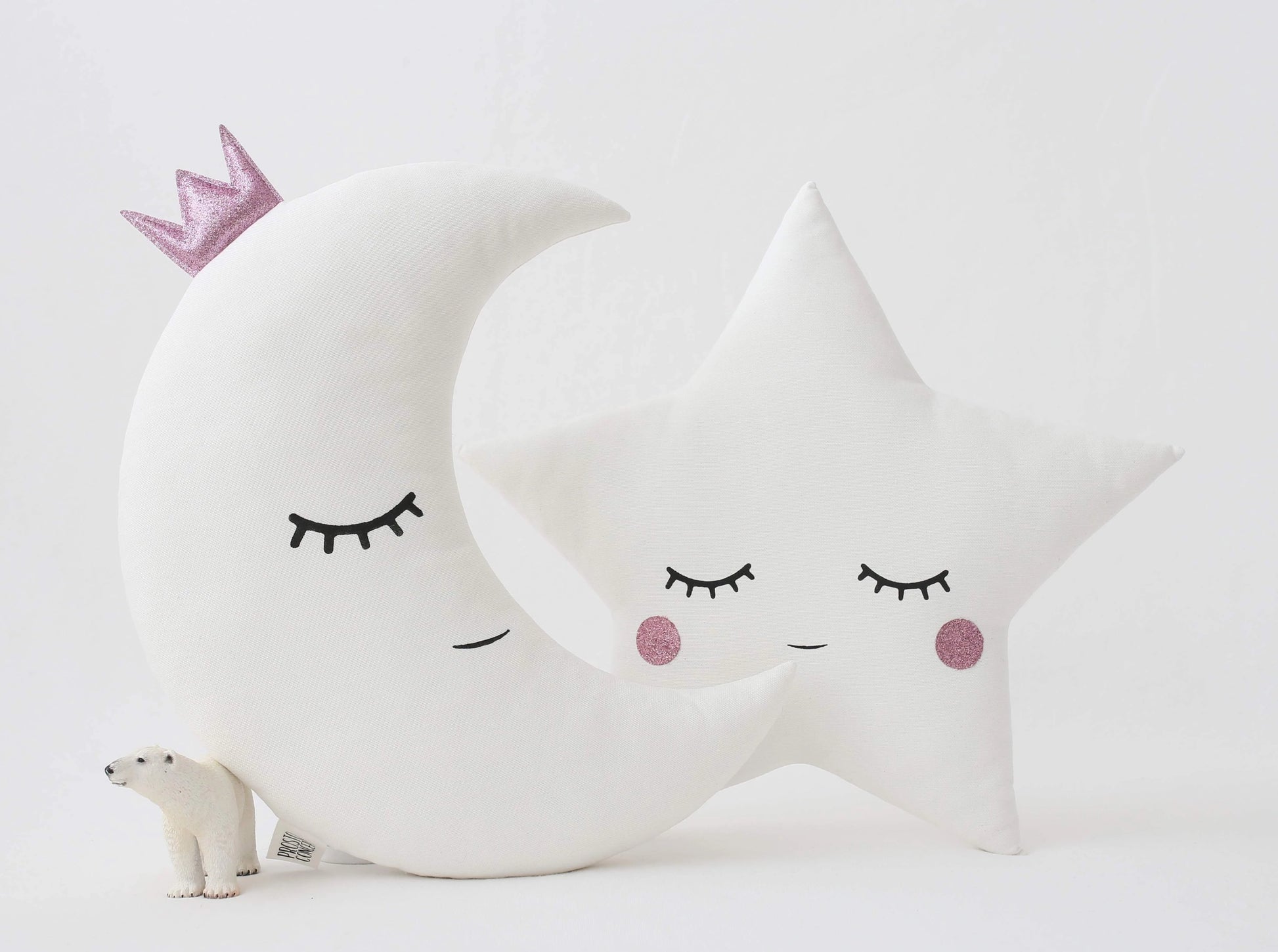 Set of 2 White Pillows - Crescent Moon and Star Pillows with Pink Touch