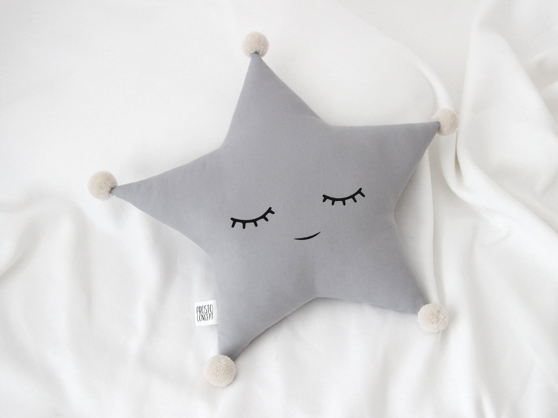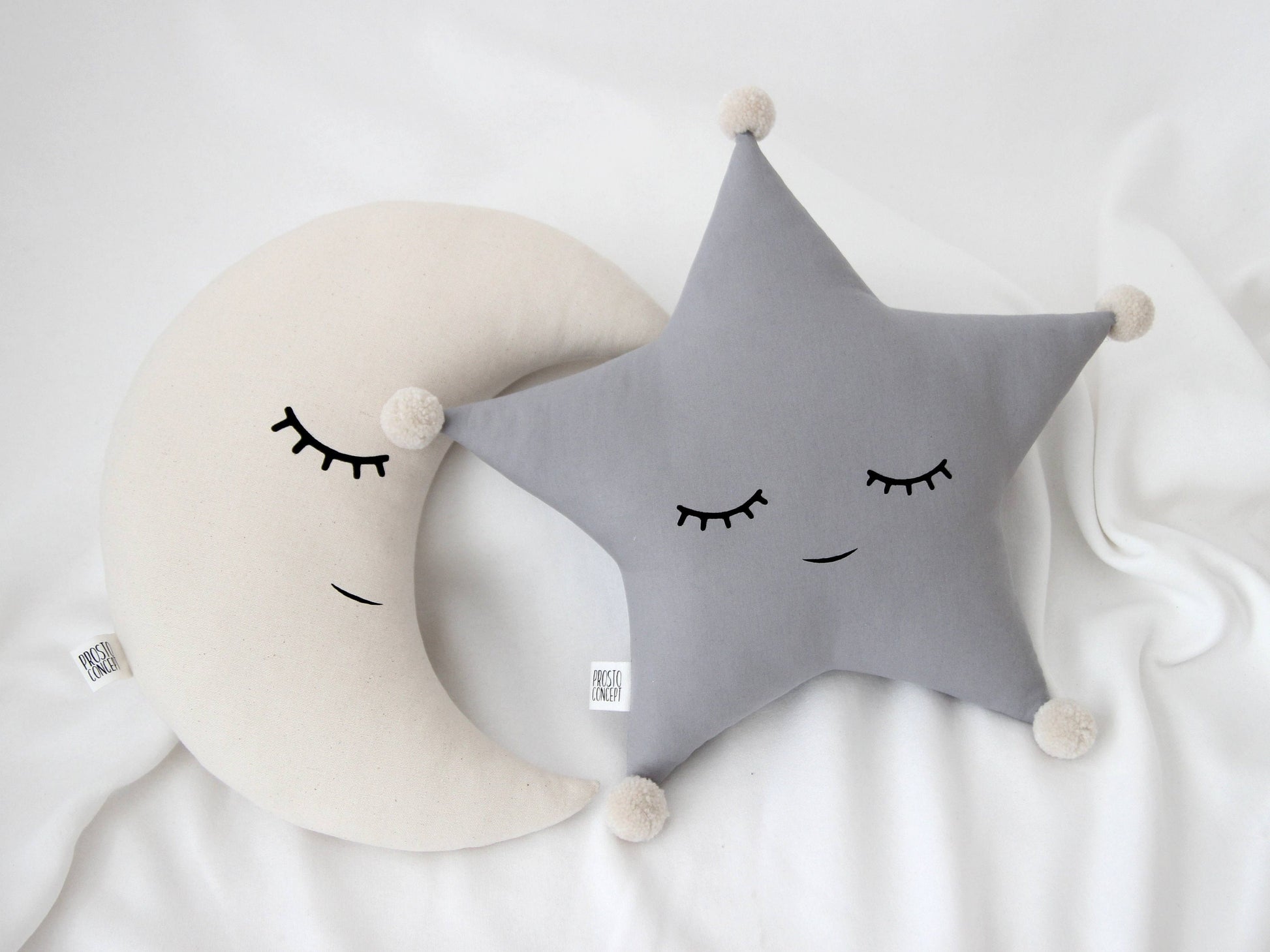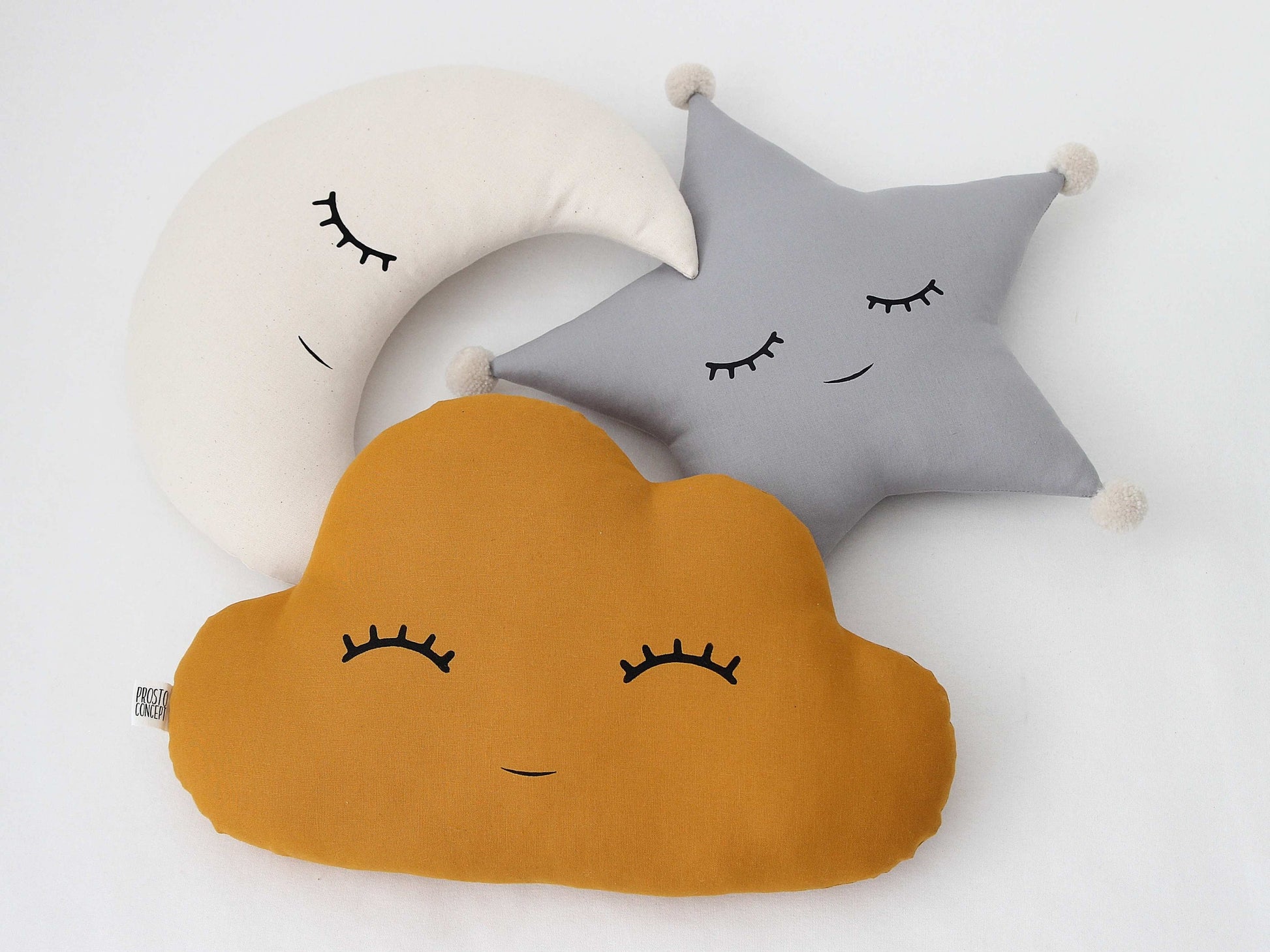 Set of 3 Pillows - Mustard Cloud, Crescent Moon (2 colors) and Gray Star Pillows